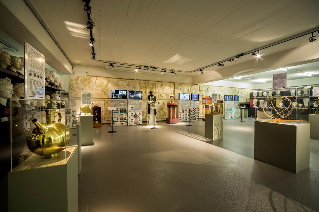 The exhibition also features Ktesibios’ Hydraulic Clock, demonstrating advanced principles of time measurement through controlled water flow, as well as the Aeolipile of Heron of Alexandria, which illustrates the use of steam power to produce motion. It further highlights the application of mechanical advantage in lifting and construction through the tripod crane, a remarkable example of Greek pulley technology (6th c. B.C.) and its use in block-and-tackle systems. Alongside these are mechanisms related to automation, hydraulics, and astronomy, revealing the lasting influence of ancient Greek technology on the foundations of modern engineering.