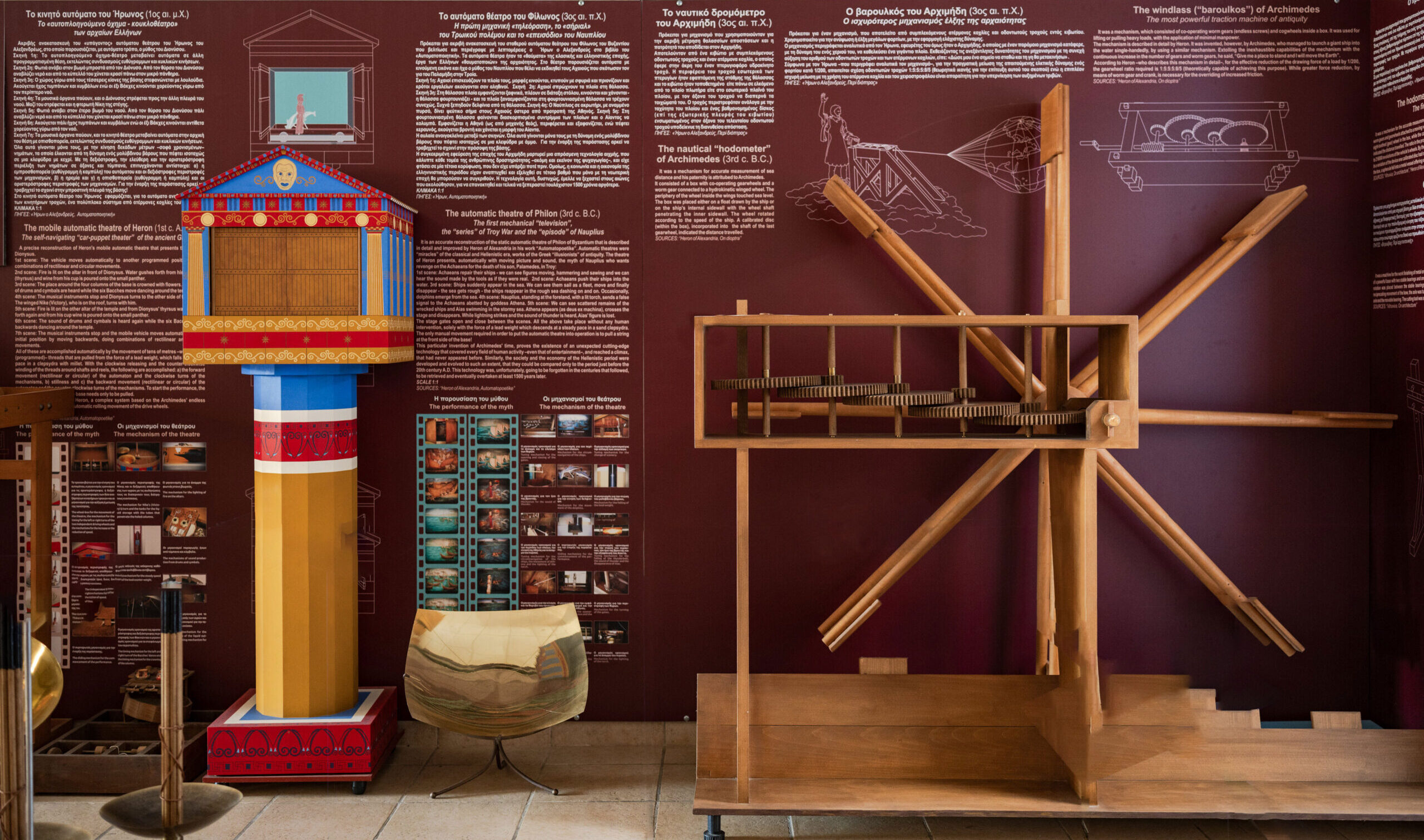 Renowned and without doubt unrivalled to this day, is the contribution of the ancient Greeks to the field of Philosophy and the Fine Arts. Likewise familiar is their contribution to the field of Science. However, the technology of the ancient Greeks is relatively unknown, just as is their incredible performance in this field. The museum’s collection includes more than 500 operating models of ancient Greek inventions. The ancient Greek technological marvel (from the robot – servant of Philon to the cinema of Heron and from the automatic clock of Ktesibios to the analog computer of Antikythera) covers the period from 2000 BC until the end of the ancient Greek world.